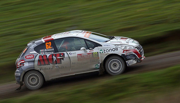 Enrico Brazzoli e Maurizio Barone portano la loro Peugeot 208 R2 al termine dell'impegnstiva gara sugli sterrati del Galles e conquistano un meritatitissimo secondo posto nella classifica WRC3 accompagnato da una prestigiosa terza piazza tra le vetture a due ruote motrici. La vettura dell'equipaggio italiano, come sempre seguita dagli uomini del Team Vieffecorse, ha marciato come un orologio dall'inizio alla fine ed ha permesso al driver di Saluzzo di cogliere con costanza ottimi riscontri cronometrici.
